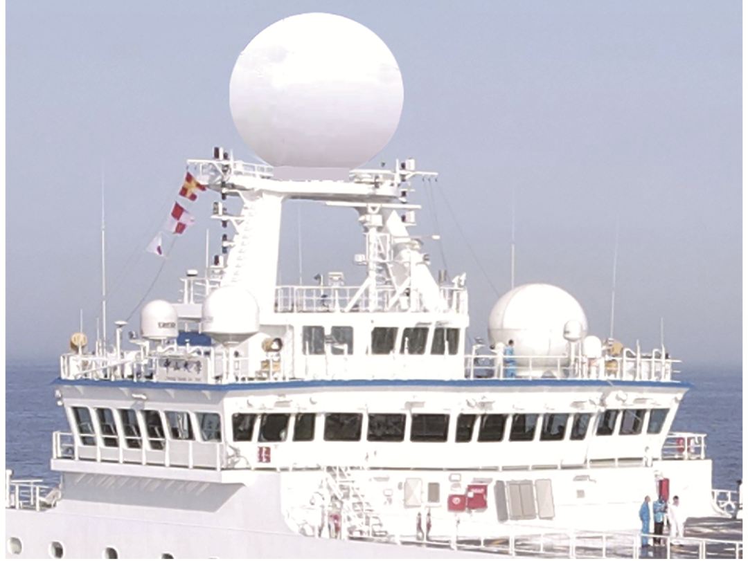 现代海洋科考船上的船载科考系统主要由作业支撑系统、船载探测系统、船载实验系统和科考网络系统组成。科考船先进性的评价与科考系统采用的新产品和新技术息息相关。这些新产品新技术反过来也深刻影响着新型科考船的整体设计。科考任务系统的创新能力已成为影响新型综合科考船整体水平和国产化率的关键要素。船载科考系统,尤其是作业支撑系统、探测系统和实验室仪器的研制应用是一项艰苦、持久且较难有投资回报的工作,需要中国加大力气并持续投入。近年来,水下定位、探测和通信设备层出不穷,频率从10 Hz到20 kHz对船体底部安装空间和周围声学环境提出了极高要求(图15);多波束测深和分辨率(图16)随着作业水深的提高也在逐步提升且安装空间也在加大;继C波段双偏振气象雷达后实船开始固定安装新一代相控阵气象雷达(图17),对船舶顶部安装平台在海上运动中的频率响应和结构变形控制要求大大提高;各种无人艇、无人机和无人潜器(图18)等无人系统的存储收放和协同作业对船舶甲板空间、收放效率以及适应海况更是提出了高要求;大量新型科考探测设备和实验室仪器设备采集的海量数据对船载科考网络的安全性、智能化、标准化以及船岸一体化提出了迫切需求。